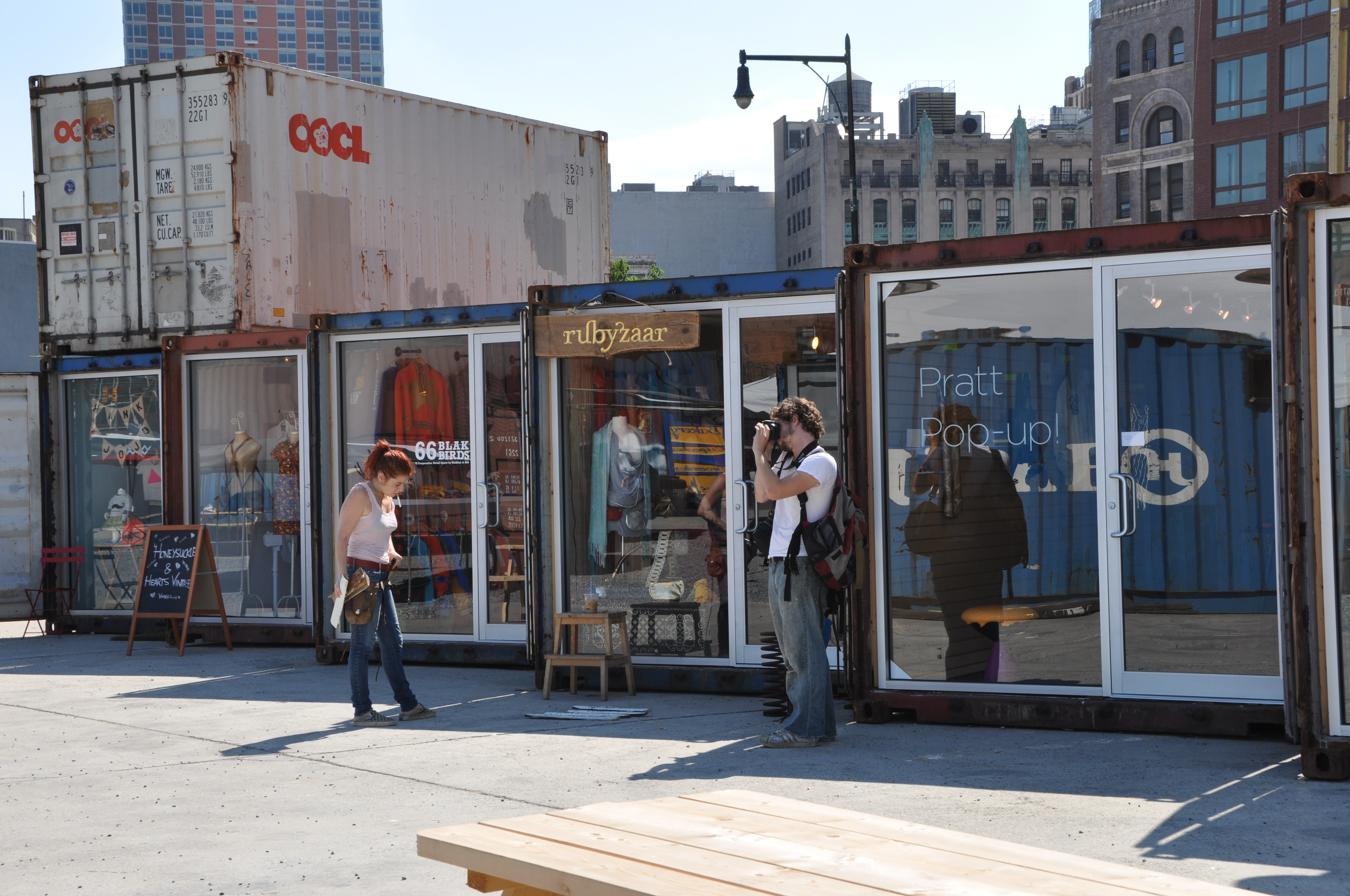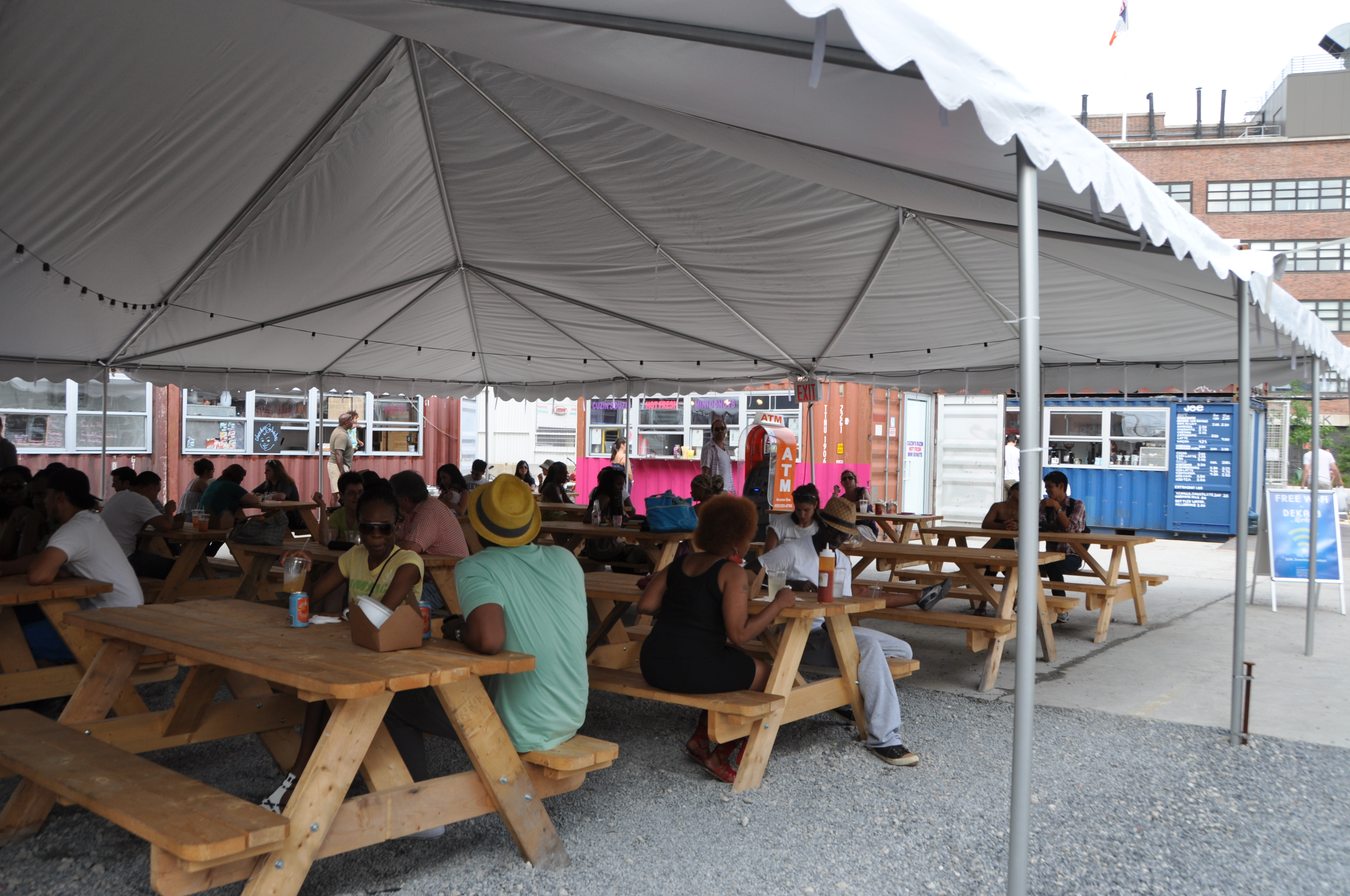 Made out of 22 recycled shipping containers, DeKalb Market opened July 23 and is Brooklyn’s newest outdoor market. Found downtown at Fulton Mall (that’s 332 Flatbush Avenue Extension; click here for directions) it encompasses the Brooklyn zeitgeist not just with its cool use of upcycling, but its mix of local eateries, retail shops, an incubator farm and even an Internet radio station, BBox Radio.