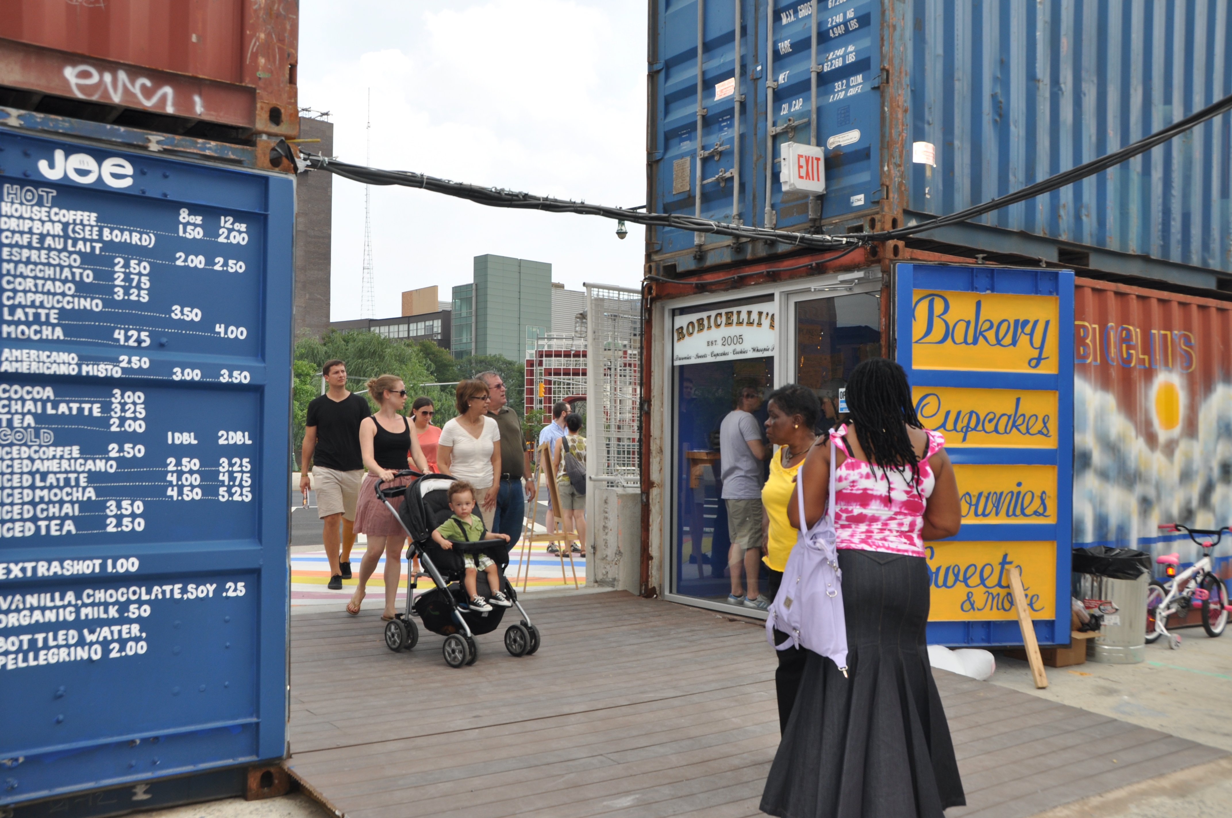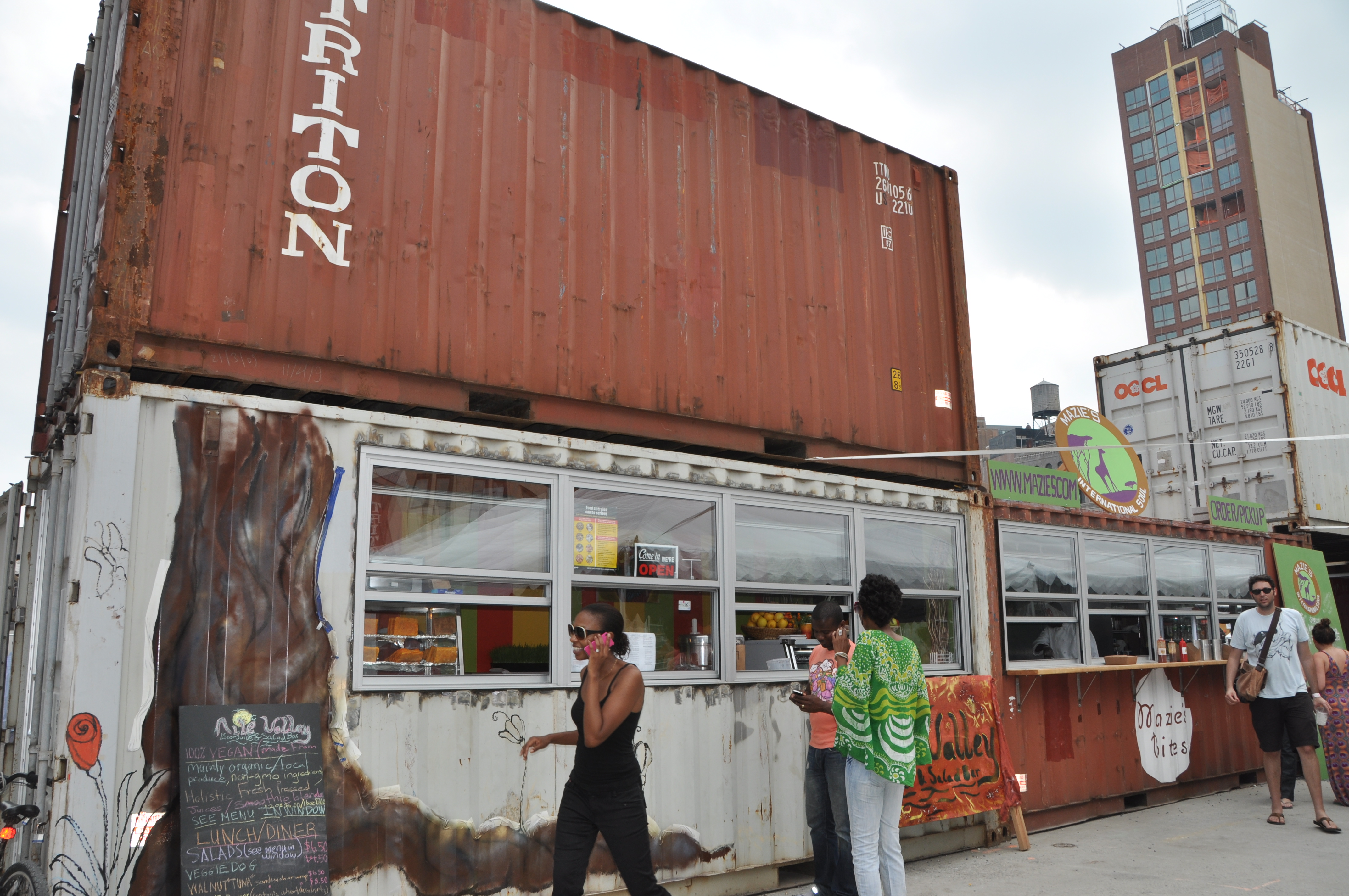 The market is meant to be a launching pad for many fledging vendors who share an entrepreneurial streak. The 60-square-foot salvaged containers serve as their storefronts and also house their dreams of opening a brick and mortar location elsewhere. Permanent vendors include Maharlika, which makes Filipino food, Nile Valley Eco-Juice and Salad Bar (for vegans) and hand-brewed teas from Tea by Tiffany. At one end of the market stand a line of retail shops that include 3rd Ward, apparel by B66, Harriet’s by Hekima and Honeysuckle & Hearts, Daga Antiques, children’s accessories and clothes by Little Poco and Hank & JoJo, Yak Blak Sunnies & Specs, and a Pratt Institute Design incubator.