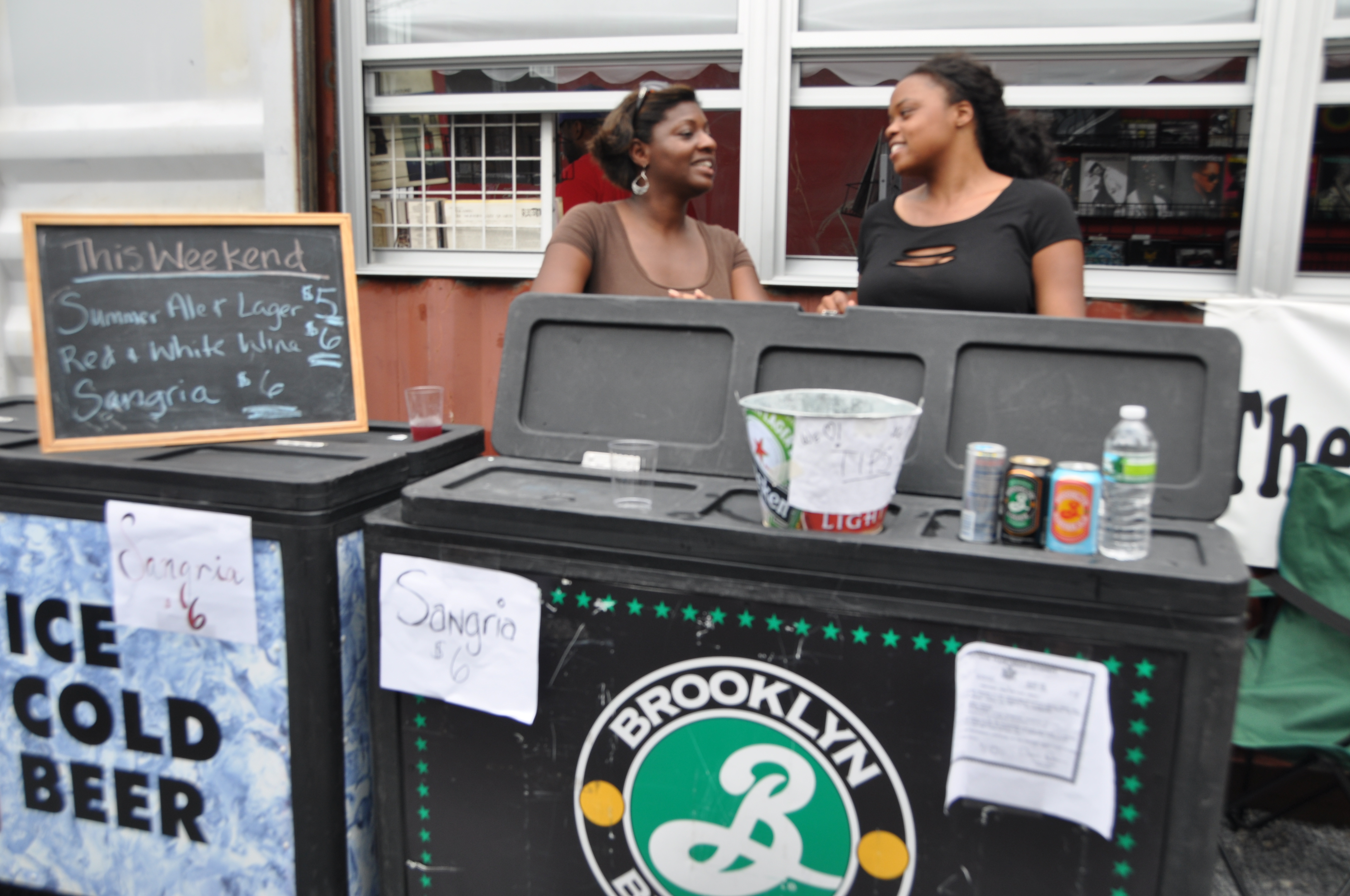 At the center of the stores is a huge shaded tent, complete with picnic tables where patrons can wile the hours away and take refuge from the heat with refreshments from Joe the Art of Coffee, Robicelli’s cupcakes–the best in town, in our opinion–Sour Puss Pickles, doughnuts from Cuzin’s Duzin, Cheeky Sandwiches, soul food from Mazie’s Bites (famous for their fish tacos and macaroni and cheese) and Pasticcio, an Italian trattoria. Molicia Crichton, founder of Nile Valley, also serves fresh smoothie and Caribbean inspired organic grub. Meanwhile feel good Frankie Beverly-type jazz and old-school hip-hop pulsate from the turntables of Brooklyn Beats, the record store run by Brooklyn Bodega and Fat Beats. They have the only liquor license on premise, and serve Brooklyn beers and sangria.