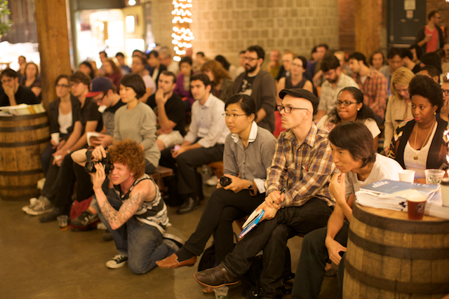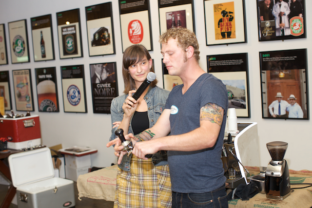 Last night Brooklyn brewery hosted Edible’s latest installment in our ongoing How-To series, which focused on coffee courtesy of three local roasters: Theresa Von Fuchs of Dallis Bros. Coffee, Chris Buerkle from Blue Bottle Coffee and Darlene Scherer and Carol McLaughlin from Gorilla Coffee regaled the crowd with stories, lessons and demonstrations. They covered everything from why coffee comes out bitter (the beans were probably ground too fine) to gadget recommendations for the kitchen (try the i-Roast 2) to what one of the early forms of paper was used to filter coffee (blotting paper.) Beyond plenty of coffee (and beer) for the consuming, Brea Collier of Organic Valley was also on hand with samples of delicious dairy products. Our next How to, by the way, will be all about dairy: See you on October 26th!