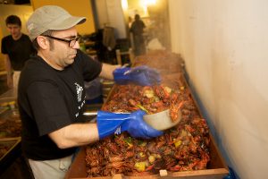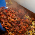 The crawfish, all 350 pounds of them, came with heaps of juicy sausage, potatoes, and corn, which we washed down with plenty of chilled beer. Decked out in snazzy bibs, mouths watering in anticipation, we got down and dirty as we dug into the communal-style dinner. Check out our slideshow for a few of our favorite shots of the night.