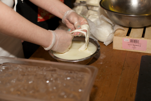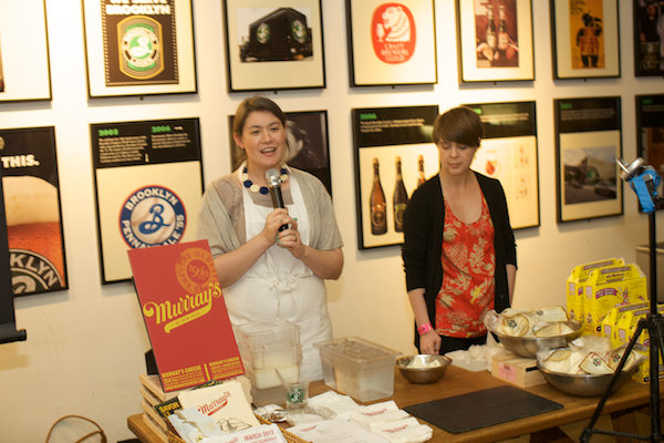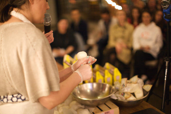 Murray’s Cheese was up next with a demo on how to make–you guessed it–cheese! Tip #1: Never, ever, ever use ultrapasteurized milk when making cheese. And lucky for us pizza addicts, mozzarella is pretty simple cheese to make at home. All you need is a gallon of milk, a cup of cool water, a teaspoon of citric acid, 1/2 rennet tablet and a tablespoon of kosher salt. We got to try Murray’s own mozzarella (um…delish) and take a recipe home. One insider trick we learned: though cheese cloth might sound logical for this kind of recipe, try muslin instead. It works better. Who knew?