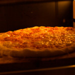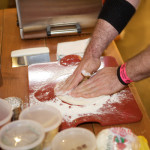 Pizza a Casa Pizza School kicked off the evening with a lecture on the foundation of crust. Some of the things we learned? Avoid using a baking sheet–it makes the pizza sweat, resulting in a soggy pizza. Instead, invest in a pizza stone. Your pizza will benefit from having the moisture pulled out. Also, avoid rolling pins, and while it may be tempting, don’t throw around your dough like you see on TV. A pizza peel is a handy way to shimmy your pizza in and out of the oven, but a piece of cardboard will also do the trick. Speaking of ovens, pre-heating is key (an hour should suffice) and as irresistible as it is, don’t open the door while the pie is cooking. If you weren’t at the lecture, bummer! Twelve lucky audience members got to taste Mark Bello’s creation, fresh out of the oven.