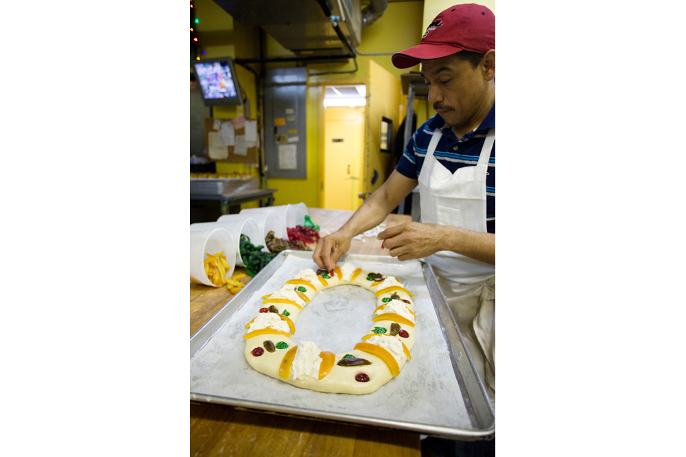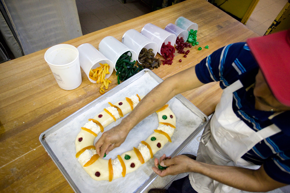 In Latin America, the peak of Christmas celebrating takes place this Sunday, aka El dia de los reyes (day of the kings). Known in English as Epiphany, January 6th commemorates the day the Three Kings arrived in Bethlehem bearing gifts for baby Jesus. But the part that gets us all giddy is the food, obviously. Rosca de reyes, or bread of kings, or the King Cake, is (when made right) a sweet, moist and yeasty ring studded with dried candied fruits, sugar and icing in Christmas colors. You’ll find one of the best in the city at Don Paco Lopez Panaderia in the pan-Latin neighborhood called Sunset Park (read more about it here in the mag). Call now to order a small ($20), medium ($35) or large ($43) cake for your own celebration, but watch out: whoever gets the slice with the plastic baby Jesus baked inside pays for next year’s cake!