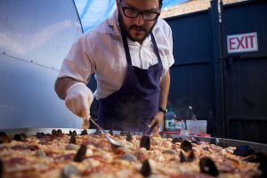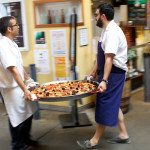 A vacation to Spain this summer would’ve been nice, but alas, it wasn’t in the cards. Luckily, Nick Suarez (of the Backyard Cooking Company) and Theo Peck (of Peck’s) brought a taste of Spain to Brooklyn for a crowd of hungry, staycation New Yorkers. Feast is a good word to describe what went down at the Brooklyn Brewery last Wednesday. Pass the Paella! featured sides that satiated (a terrine, crusty bread from Bien Cuit and carrots with salsa verde buttermilk dressing) alongside the main attraction, a beautiful paella prepared in the biggest pan we’d ever seen and overflowing with chicken, chorizo, piquillo peppers, saffron, mussels and cockles with aioli sauce. Ole! To wash it all down? Cans of beer from our host, Brooklyn Brewery. It was an all-you-can-eat extravaganza that had us (or at least our stomachs) convinced that we were a million miles away…if only for a few hours. Check out the slideshow to see for yourself! Or better yet, check out our groovy video and learn all about what a difference a paella pan can make.