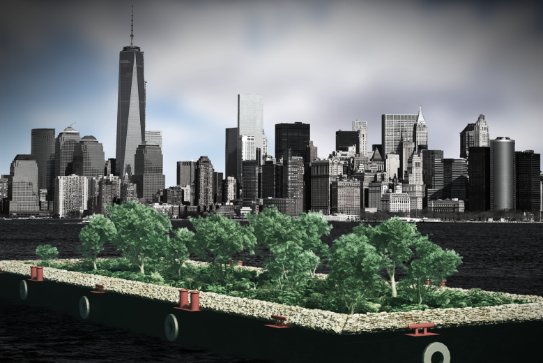 Mary Mattingly: Swale is a public floating food forest in New York City. It is designed as an experiential artwork, site (and instigator) for long-term accessible, free public food. Swale’s mission is to highlight the importance of fresh, healthy food, and access to clean water as a right for everyone. It continues a movement for regenerative food and water-based ecosystems in urban spaces, and is also an active event space. We want to reinforce water as a commons, and work toward fresh food as a commons, too.