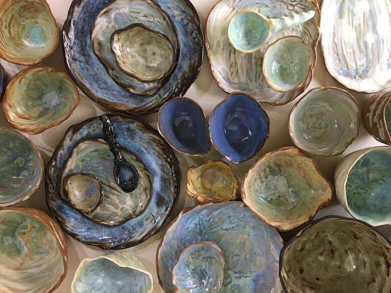 Barr, who grew up in the Catskills uses elements of the places she’s been in her work—the colors of shale and lichens, textures of stone walls—giving her ceramics a look as if it came right out of the ground.