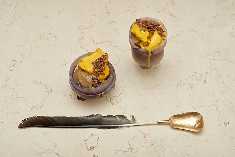 On May 18 and 19, Steinbeisser will bring their whimsical and provocative series to Bushwick, Brooklyn’s 99 Scott event space, in partnership with the James Beard Foundation, for its first New York installation. Tickets to the entirely vegan nine-course meal—cooked by chefs Dominique Crenn of San Francisco’s Atelier Crenn, New York–based Elise Kornack, Emma Bengtsson of Aquavit, and Niki Nakayama of Los Angeles’s n/naka, and featuring custom cutlery and tableware by 15 artists—cost a rather extravagant $875. An alcoholic or non-alcoholic beverage pairing is included, and a portion of the proceeds will support the James Beard Foundation Women’s Leadership Programs.