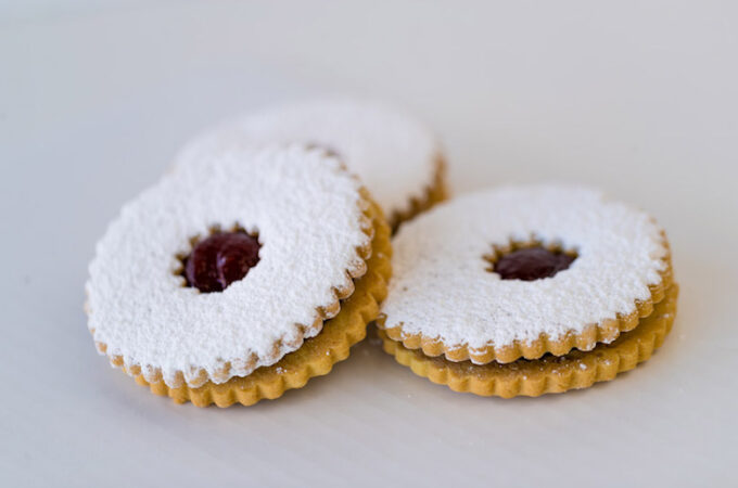 This is a very tasty, crowd-pleasing recipe that uses the fresh cranberries we see pop up in grocery stores every autumn. The cranberries are first prepared by macerating them in a bit of sugar to bring out the sweet/tart flavor, which in turn gives such a bright pop to the cookie. At The Good Batch, we also make a pistachio flour that brings a little more depth to the cookie. This shortbread is a bit on the savory side, which can be a nice break from all the heavy sweets we see this time of year.