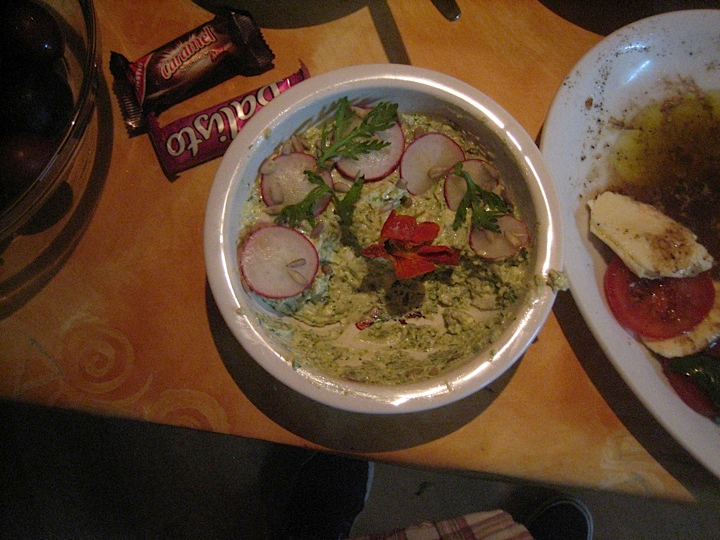 …and the food is excellent, against all jaundiced expectation. Seafood is the staple here, and advised by our lovely festival hostess Jelena, we load a groaning table with platters of grilled squid (local) and grilled tuna steaks (clearly not local); more platters of sausage and other grilled meats; a massive round squid-ink and cuttlefish risotto; and an array of smaller bowls containing such enticements as polenta, steamed local chard, anchovies, and the mellow, robust red pepper spread known as ajvar – a staple of the region, and a perfect complement to the grilled meats. There also baskets of bread, plates of cheese, and regional wines: a white Zlahtina (fine to drink, but lacking depth), and a smooth red Babic which turns out to complement both the meats and fish nicely – possibly enhanced by the sun setting over the azure sea, but who’s keeping score, really?