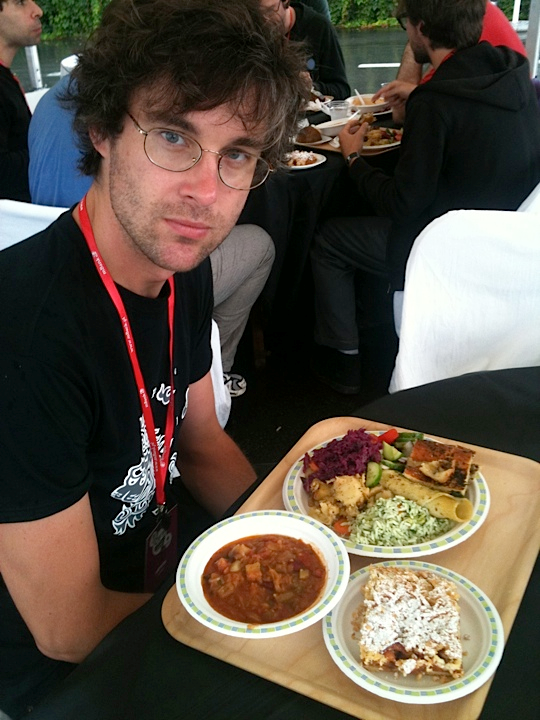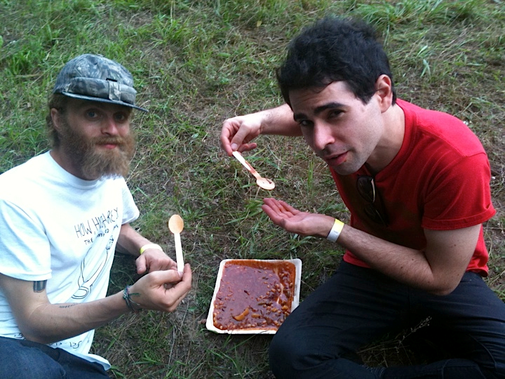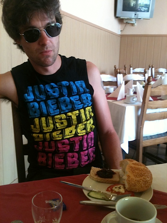In our current issue we profiled the Bushwick fridge of Kid Millions–aka musician John Colpitts—the drummer for and co-founder of Oneida, a loud, weird, brainy Brooklyn band that has produced more than a dozen albums since 1997, and whose psychedelic/ electronic noise-rock is now a linchpin of the country’s underground music scene. (Their new album Absolute II is out now on Jagjaguwar.) The band are also road foodies par excellence, making sure to eat well whereever and whenever they travel. This past summer, in fact, they toured Europe, and the following dining diary was kept by Millions’ fellow bandmate, Bobby Matador. As Millions tells us, “Bobby Matador is Oneida’s woodie player, vocalist and resident Leo. He currently lives in Boston with his wife and two children and has recently contributed original sequences to Karl LaRocca’s Emergencynth.”
