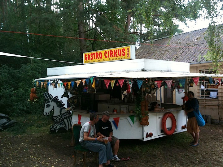 In the evening, we pull into Sommerfest, an idiosyncratic DIY festival set in a bucolic lakeside tent community in Biesenthal – a country destination outside Berlin. The mood is unrepentantly hippie, German-style: nakedness and a utopian feel resound, but tempered by an ambition, energy, and precision that feel otherworldly to an American accustomed to a hippedom that too frequently equates to laziness and squalor. There is no outpouring of punk-rock wrath from Oneida, only mild, amused wonder and respect for the efforts and accomplishments of our amiable hosts.