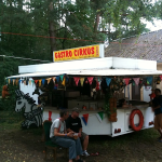 Amidst the homemade lakeside sauna, the minimal-techno dance meadows, the trampolines and makeshift theatres, we are guided to a permanent structure – a somewhat dilapidated cottage at the edge of the woods – where we are served more beets, wursts, and cheese, along with a piquant pesto that’s perfect for mopping up with fresh, crusty bread. Later that night we will also tuck into plates of handmade meatballs with potato puree; platters of stewed beans with bacon, green beans and potatoes right off a giant campfire; and some in the band will sit at low trestle tables assembled in a meadow and eat sparklingly fresh sushi in a temporary al fresco restaurant assembled during the evening. The entire festival must cover a square mile or more of lakefront, meadows, and woods, and dotted everywhere are jury-rigged bars serving an Augustiner helles (light) beer – brewed in Munich, not locally, but the hosts tell us that this is the best summer beer in Germany, and so they’ve brought it specifically for Sommerfest. An excellent choice, it is yeasty and supple, proving delicious and drinkable from afternoon to the deepest hours of the morning.