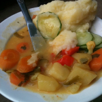And the breakfast is a success! We wander down the road from our friend’s spacious flat in Islington to find an organic Filipino restaurant with a luscious, nearly untended back garden. We end our culinary European dash with spiced lamb sausages, caramelized red onions, poached eggs, potatoes, mushrooms, beans and toast. This is a perfect, unpretentious execution of the English breakfast, and I feel as though we’ve succeeded in everything we meant to do: the music, the people, the food, the drink, have all worked a kind of alchemy over the past nine days that I can carry home with me, that will defend me against the rigors of airline dining, and that I can (figuratively) chew on for weeks and months to come.