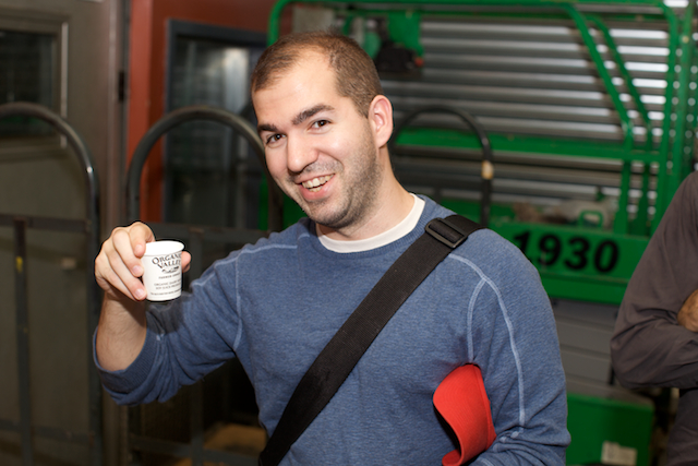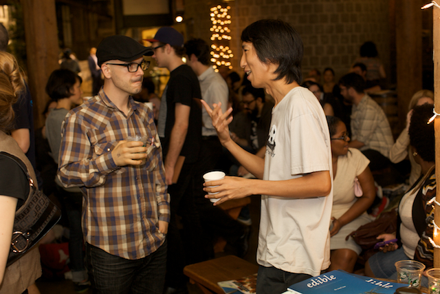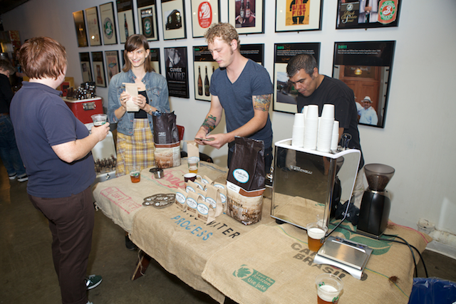 Last night Brooklyn brewery hosted Edible’s latest installment in our ongoing How-To series, which focused on coffee courtesy of three local roasters: Theresa Von Fuchs of Dallis Bros. Coffee, Chris Buerkle from Blue Bottle Coffee and Darlene Scherer and Carol McLaughlin from Gorilla Coffee regaled the crowd with stories, lessons and demonstrations. They covered everything from why coffee comes out bitter (the beans were probably ground too fine) to gadget recommendations for the kitchen (try the i-Roast 2) to what one of the early forms of paper was used to filter coffee (blotting paper.) Beyond plenty of coffee (and beer) for the consuming, Brea Collier of Organic Valley was also on hand with samples of delicious dairy products. Our next How to, by the way, will be all about dairy: See you on October 26th!