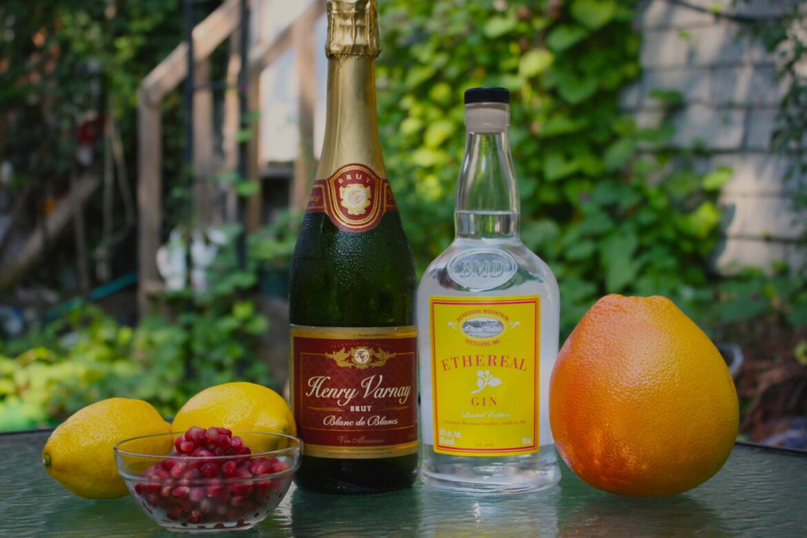 This cocktail features Ethereal Gin Batch 13 by Berkshire Mountain Distillers, a spirit produced in Great Barrington, Massachusetts. Each version of Ethereal is a limited-edition gin, the recipe changing with each batch. Ethereal Batch 13 is distilled with a total of 14 carefully selected botanicals. Its profile involves deep layers of citrus: grapefruit, lemon, lime and orange. This recipe showcases the grapefruit and lemon aspects of Batch 13, named “The Garnet Spritz” for the addition of fresh pomegranate seeds and sparkling white wine topper.