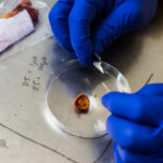 While the kefir class takes place near the equally hodgepodge kitchen, Genspace member Peter Russell tinkers around the lab, chopping crimson-colored waxcap mushrooms into tiny little pieces. He scoops the crumbs off a Petri dish into plastic tubes and proceeds to use a soapy liquid to break down the mushroom cells and extract their DNA. As a former botanist, he’s interested in identifying which genes help the mushrooms grow in various types of soils. “I come all the way from Texas whenever I get a chance because Genspace is the only lab where I have access to the equipment needed to do this,” he says.