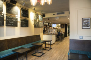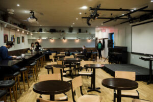ME: Adjacent to the café is an event space that seats 75 where we host talks, films, music and comedy, open mics, workshops and parties. Once the co-op is smoothly running the café, it will be offered the opportunity to take over the event space, an exciting challenge for the worker-owners.