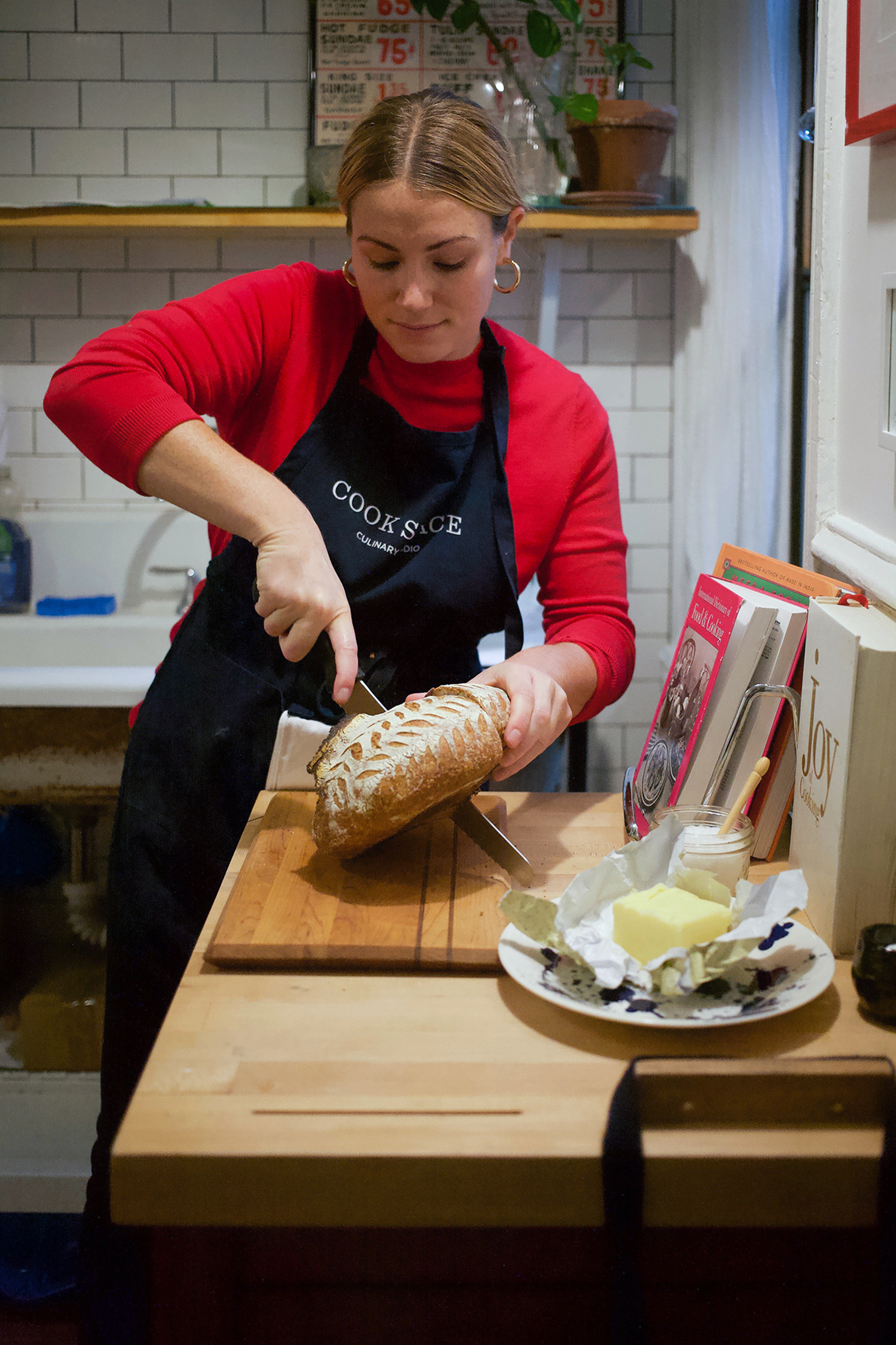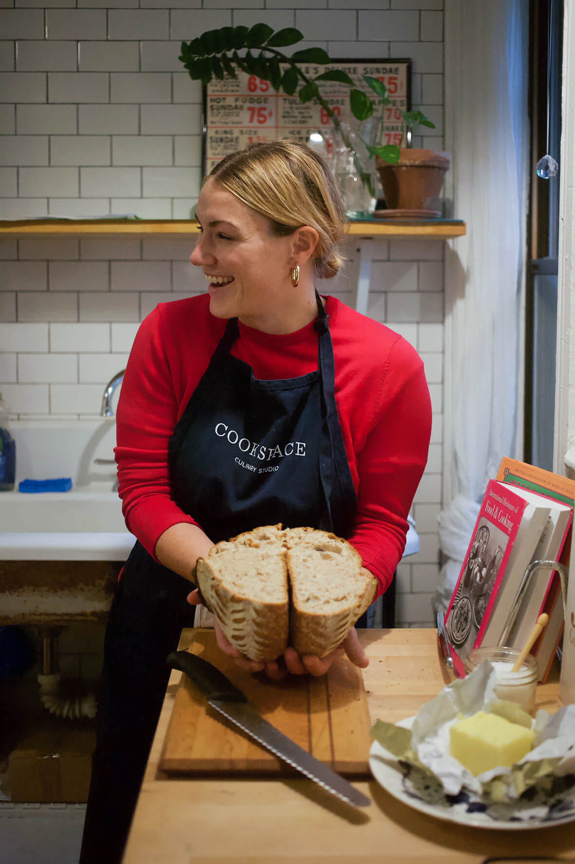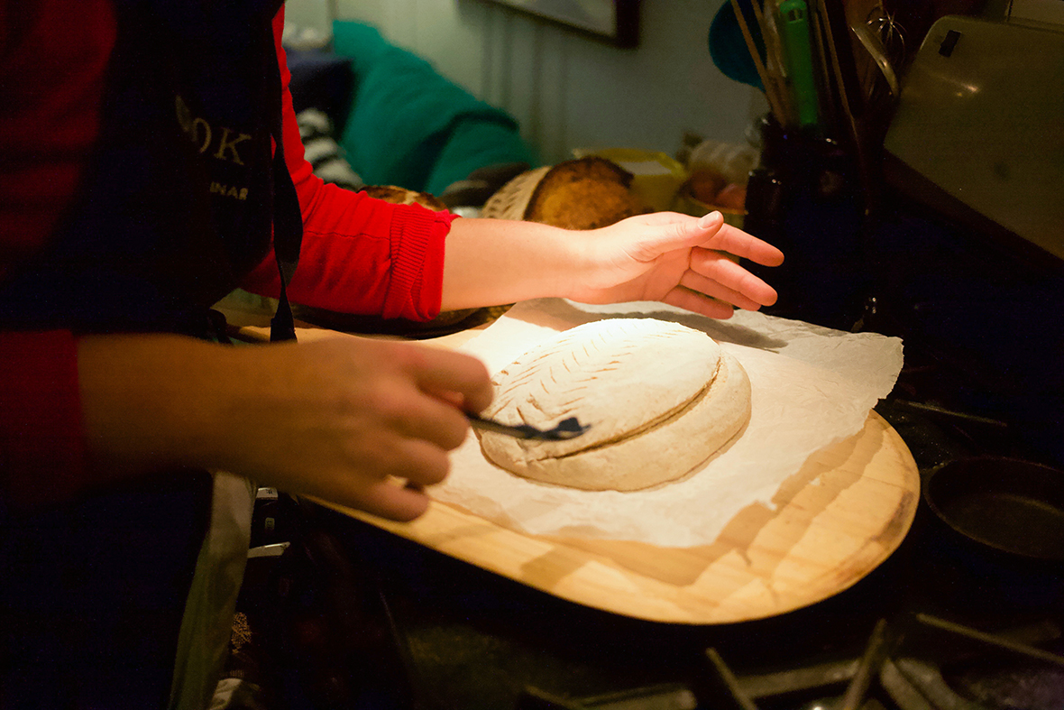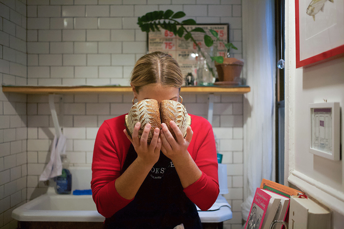 Operating out of a one-bedroom apartment in Bed-Stuy shared with her partner, Sam Carmichael— whose bread-making hobby first got her interested in experimenting with sourdough—Evans’s home has quickly turned into a small artisan bread lab. Carmichael’s ongoing support has been invaluable, from taking loaves out of the oven to designing the Permanent Bake Sale logo, he provides vital assistance getting four to eight loaves from dough to doorstep every week. But by far the biggest logistical hurdle is delivery. “Making bread is hard but organizing people in New York is much harder,” laughs Evans. Each week, she treks across the city by bike and on foot to hand deliver each loaf; she’s also started offering a CSA-style pickup once a week at a wine shop in Brooklyn to alleviate some of the pressure.