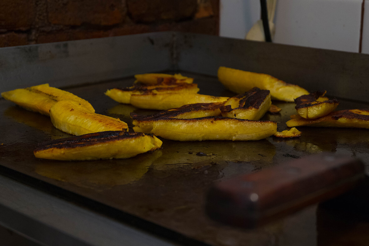 His yearning for suya “done well” led him to launch The Suya Guy, in 2016, a pop-up restaurant on the lively Franklin Avenue in Crown Heights, Brooklyn. At his current location, the scent of stewed tomatoes and sweet plantains browning in hot oil permeates the air on any given day. Once placing your order, you can hear the hot grill sizzling with your choice of protein (shrimp, chicken, beef)—marinated in a housemade suya spice rub, a blend of ginger, garlic, onion, chile, paprika, ground peanuts, black pepper and a few additional ingredients chef Agwu declines to share.