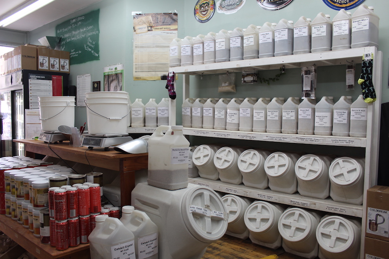 Some of the tools for home brewing at Bitters & Esters. Photo by the author.