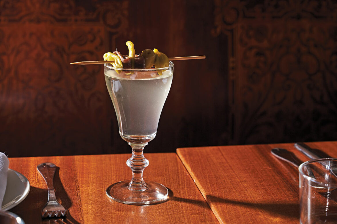 Of course, nothing exists in a vacuum: At The Snail, an American bistro in Greenpoint, Brooklyn, you’ll find a different variation on a Gilda Martini—this one including skewered olives, anchovies, piparra peppers, and the aforementioned octopus tentacle.