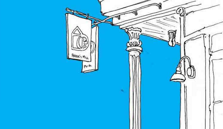 Former New Yorker cartoonist John Donohue sketches each restaurant facade in pen and ink in about 20 minutes and doesn’t make any corrections.